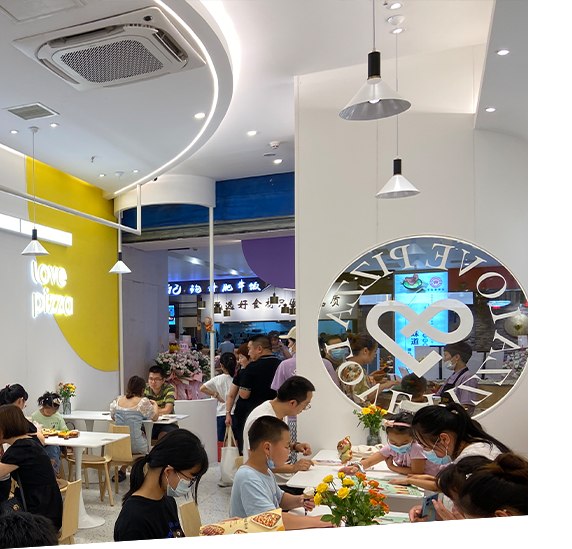 愛八寸品牌從十幾平米到上百平米均可開店,規(guī)劃科學(xué),裝修標(biāo)準(zhǔn)。總部為門店配送半成品的披薩餅胚.